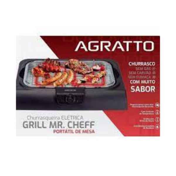 rática na hora de preparar diversas opções de grelhados: carnes, aves, peixes e legumes. A Churrasqueira Elétrica Agratto é ideal para sua residência. Com o ajuste de temperatura e a grelha com regulagem de altura você prepara diversos tipos de alimentos. Assados deliciosos na comodidade de sua casa. Por não necessitar de carvão pode ser usada dentro da casa ou apartamento, pois faz muito menos fumaça, preservando a pureza do ar no ambiente. Seu termostato com ajuste de temperatura e a grelha com regulagem